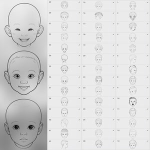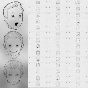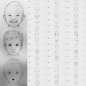 Stop wasting time redrawing the same head shapes over and over โ with 160 Young Child Boy's Heads Stamps, youโll always have a reliable set of portrait foundations at your fingertips.
