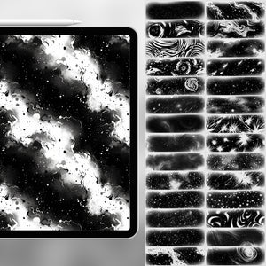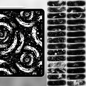 These Procreate galaxy brushes bring the wonders of the cosmos to your digital art. Whether you’re depicting starry nights, designing sci‑fi scenes or creating dreamy cosmic patterns, these textures adapt beautifully. Ideal for artists searching for Procreate galaxy texture brushes, nebula patterns and star field effects.
