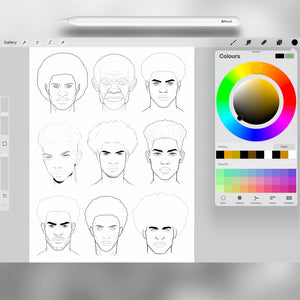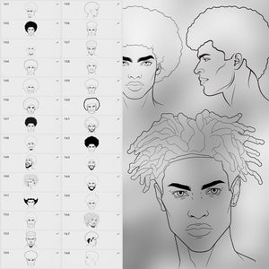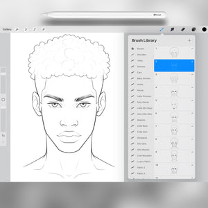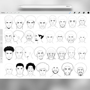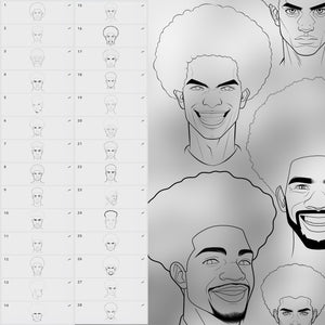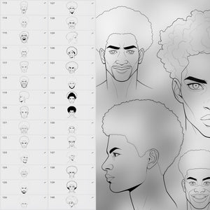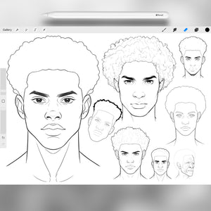 This Procreate stamp set is the ultimate tool for anyone who wants to design realistic male characters, create diverse portraits, or enhance their art with Afrocentric male figures.