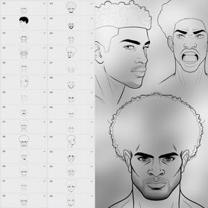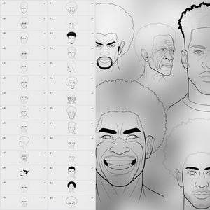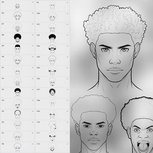 Stop redrawing male heads from scratch — with 180 Afro Men Stamp Brushes, you’ll always have a ready library of diverse, expressive male faces at your fingertips.
