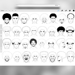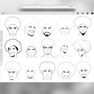 Join & Download free⚡ Improve your Procreate artwork with expressive Afro men head stamp brushes in seconds!
