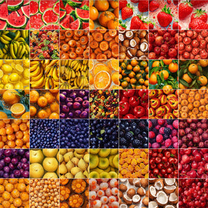 ✔️ Includes citrus cross-sections, berries, tropical fruit skins and playful fruit motifs