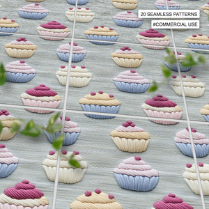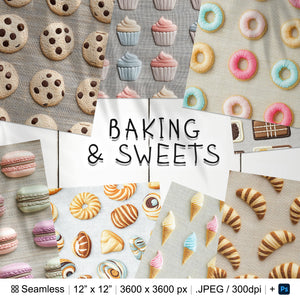 20 Baking & Sweets Embroidery Seamless Pattern