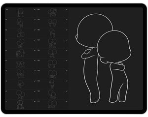 This Procreate stamp set is the ultimate tool for anyone who wants to design cute chibi characters, practice proportions, or add playful poses to their artwork.