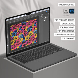 The patterns come in high-resolution JPEG and .PAT (Photoshop pattern) formats.