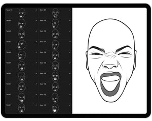 This Procreate stamp set is the ultimate tool for anyone who wants to practice drawing emotions, design manga characters, storyboard scenes, or add diverse female faces to their art.