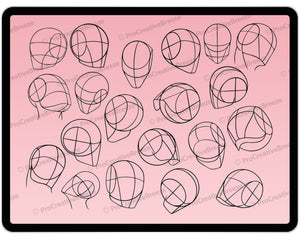 This stamp set is made for artists who want to master head construction, design accurate portraits, sketch character bases, or add proper proportions to their digital art.
