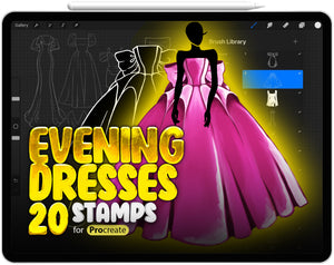 These Procreate wedding dress brushes are perfect for bridal art, evening fashion, and decorative projects. With detailed stamps of gowns and stylish poses, you can easily create graceful, elegant designs for digital painting, concept art, and storytelling.