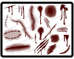Stop wasting hours drawing drawing wounds from scratch — with these 20 wound and scar stamp brushes, you’ll always have ready-made wounds and scars at your fingertips.