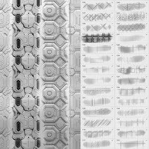 These Procreate brushes recreate the toughness of metal plates with seams, rivets and textures reminiscent of factories and starships. They bring strength and structure to your artwork.