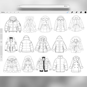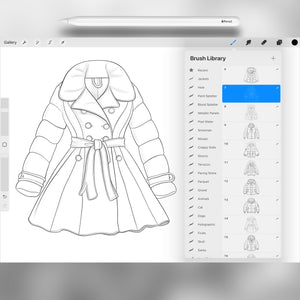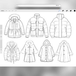 These Procreate winter jacket brushes are perfect for fashion sketches, outfit design, and character artwork. With a wide range of outerwear styles, you can easily create modern looks, cozy outfits, or stylish clothing details for your digital projects.