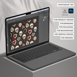 The patterns come in high-resolution JPEG and .PAT (Photoshop pattern) formats.
