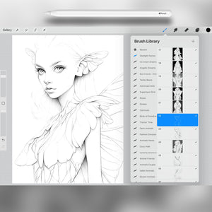 These Procreate fairy brushes are perfect for fantasy art, magical character design, and storytelling. With detailed stamps of winged fairies, elves, and whimsical figures, you can quickly build enchanted scenes full of light and wonder. Ideal for digital painting, children’s book illustrations, or fantasy concept art.