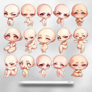 This Procreate stamp set is the ultimate tool for anyone who wants to sketch cute characters, create stickers, or build charming chibi designs with ease.