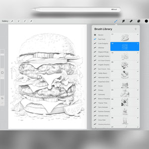 These Procreate fast food brushes are perfect for culinary art, kids’ illustrations, and decorative projects. With detailed stamps of popular snacks and meals, you can quickly create fun and mouth-watering artwork for digital painting, concept art, and storytelling.