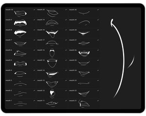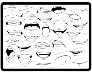 This stamp set is tailored for artists who want to draw expressive mouths, design manga characters, sketch anime expressions, or add stylized smiles to their art.