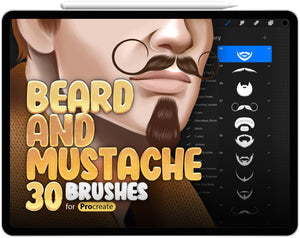 These Procreate beard brushes are perfect for realistic character illustration, stylized portrait design, and facial hair texture painting. With ready-made Procreate mustache and beard stamps, you can instantly apply stubble or elaborate whiskers using facial hair stamp brushes. Whether you're working on comics, character concepts, digital portraits, or stylized avatars, these brushes help you work faster, keep your art expressive, and add depth with ease.