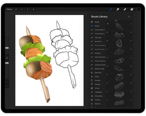 These Procreate dishes stamps are perfect for foodie art, graphic design and culinary illustration. With meal brush stamps and kitchen references, you can quickly draw mouthwatering foods for menus, cookbooks or digital prints. Whether you’re illustrating breakfast spreads, fast-food fun or gourmet delights, these stamps will make your art deliciously detailed.