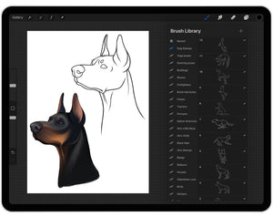 These Procreate dog brushes are perfect for pet portraits, character design, and animal art. With a selection of dog stamp brushes, you can quickly add different breeds and poses to your digital illustrations.