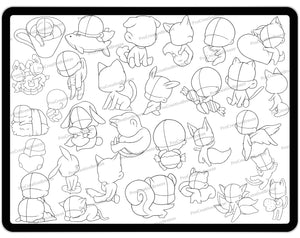These Procreate chibi brushes are perfect for anime art, manga design, and kawaii illustrations. With ready-made chibi character stamps, you can instantly create expressive figures, practice proportions with Procreate chibi brushes, or design playful scenes featuring adorable Procreate chibi dolls. Whether you’re working on comics, stickers, character sheets, or personal projects, these brushes give you endless possibilities to speed up your workflow and make your art more fun and creative.