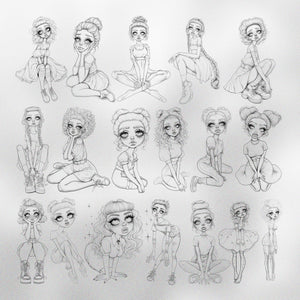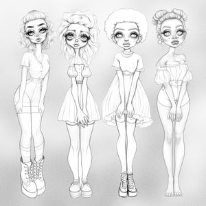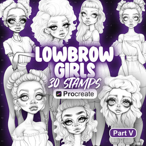 These Procreate lowbrow stamps are perfect for pop culture artists, tattoo designers and illustrators who love the strange. With 30 new surreal girls, you can populate your art with eye‑popping characters, twisted smiles and psychedelic patterns. Whether you’re creating sticker packs, album art or journal pages, these Procreate stamps adapt to your weirdest dreams.