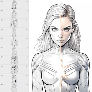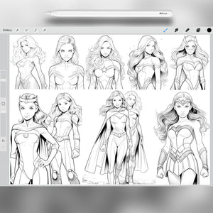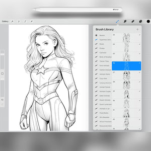 This Procreate stamp set is the ultimate tool for anyone who wants to create comic-style art, design heroic characters, or quickly add dynamic female superhero poses to their artwork.
