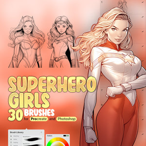 30 Superhero Girls Stamp Brushes for Procreate and Photoshop