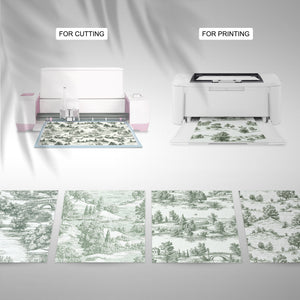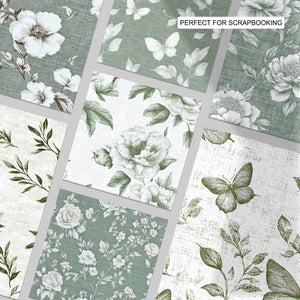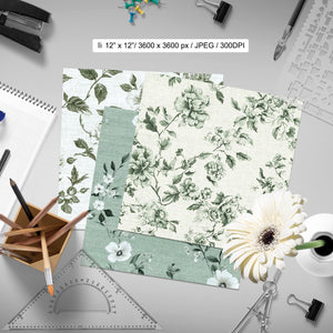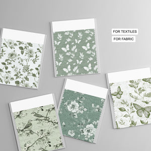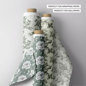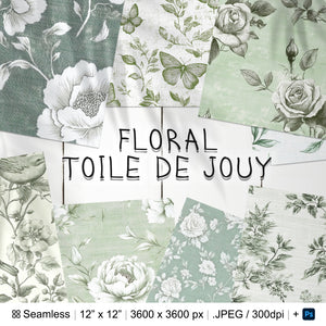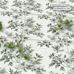 32 French Green Floral Toile de Jouy Seamless Pattern