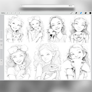 Join & Download freeโก Add heartwarming charm to your art with girls and pets stamps in seconds!