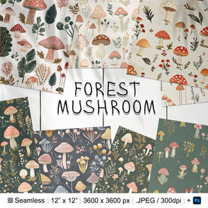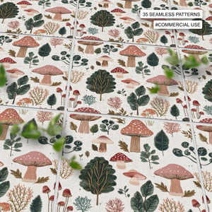 35 Mushrooms Forest Embroidery Seamless Pattern