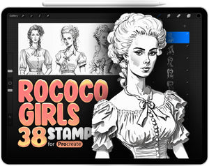 Join & Download free⚡ Improve your Procreate artwork with elegant Rococo girls stamps in seconds!