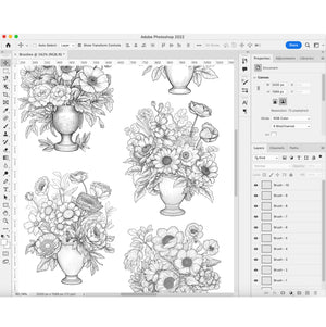 39 Flowers in vase Stamp Brushes for Procreate and Photoshop