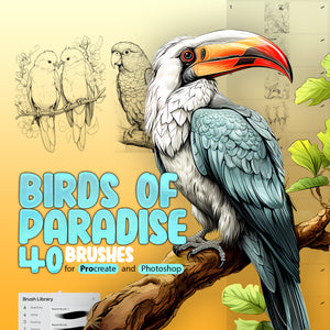 40 Birds of Paradise Stamp Brushes for Procreate and Photoshop