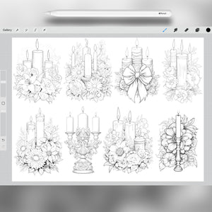 These Procreate floral candle brushes are perfect for holiday art, decorative projects, and cozy illustrations. With detailed stamps of candles and flowers, you can easily create glowing, festive scenes for digital painting, concept art, and storytelling.