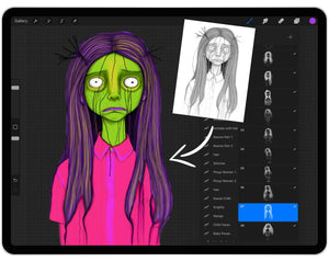 These Procreate surreal girl brushes are perfect for psychedelic art, horror-fantasy projects, and experimental character design. With detailed stamps of trippy, eerie, and subcultural figures, you can instantly create dark, vibrant, and otherworldly compositions. Ideal for digital painting, concept art, and poster design.