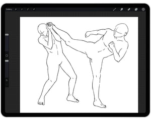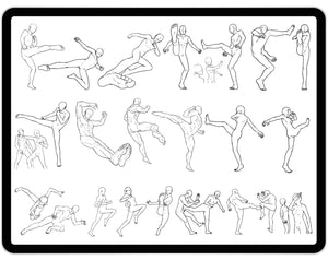 This Procreate stamp set is the ultimate tool for anyone who wants to practice anatomy, design dynamic fight scenes, or add expressive martial arts poses to their art.