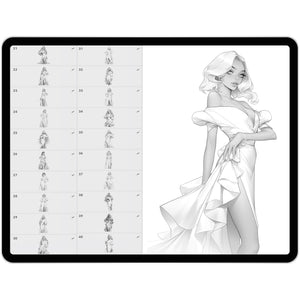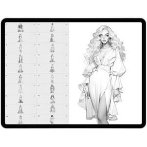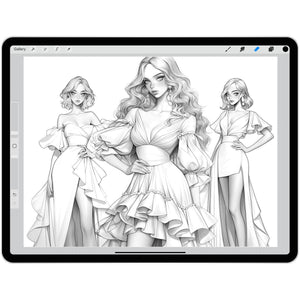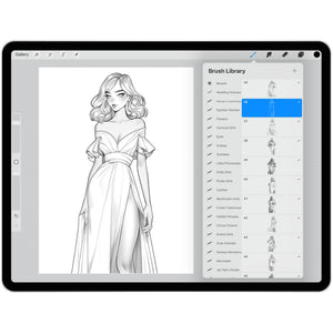 These Procreate wedding dress stamps are perfect for fashion illustration, bridal design and romantic art. With wedding dress brushes and gown references, you can easily create bridal lookbooks, couture sketches or fairytale brides. Whether you’re illustrating wedding scenes, designing gowns or planning your dream dress, these stamps will bring bridal elegance to your artwork.