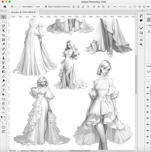 45 Wedding Dresses Brushes for Procreate and Photoshop