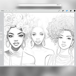 This Procreate stamp set is the ultimate tool for anyone who wants to create expressive portraits, design fashion-inspired characters, or quickly add beautiful Afro girls to their artwork.