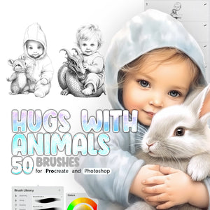 50 Babies Hug Animals Animals Brushes for Procreate and Photoshop