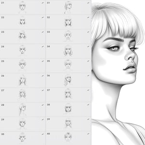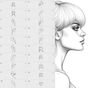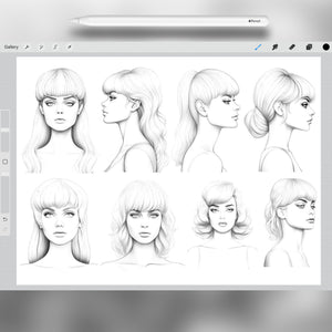 This stamp set is the ultimate tool for anyone who wants to illustrate trendy haircuts, design fashionable female characters, or quickly add detailed hairstyles to their artwork.