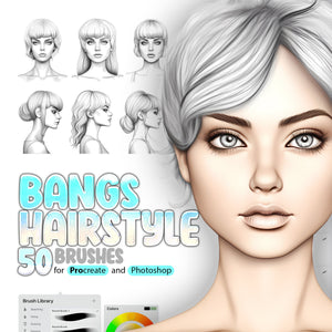 50 Bangs Hairstyle Brushes for Procreate and Photoshop