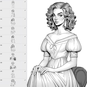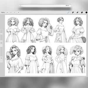 This Procreate stamp set is the ultimate tool for anyone who wants to create historical illustrations, design baroque-inspired characters, or quickly add luxurious fashion poses to their artwork.