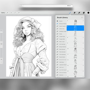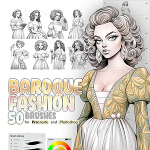These Procreate baroque fashion brushes are perfect for fashion art, historical illustration, and decorative design. With detailed stamps of ornate dresses and refined poses, you can instantly create sophisticated and dramatic compositions. Ideal for digital painting, costume design, and concept art.