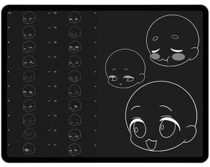 This expressive stamp set is ideal for artists who want to draw chibi faces, design kawaii characters, sketch emotion charts, or add emotive expressions to their art.