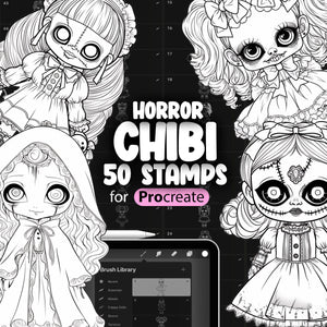 Stop spending hours sketching horror doll features — with 50 Chibi Horror Doll Stamp Brushes, you’ll always have a ready-made collection of creepy-cute characters at your fingertips.