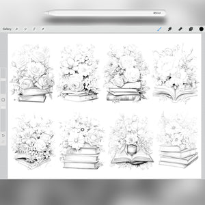 This Procreate stamp set is the ultimate tool for anyone who wants to create whimsical illustrations, design storytelling scenes, or quickly add decorative books with flowers to their artwork.