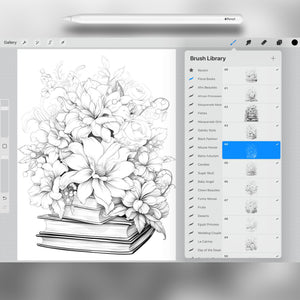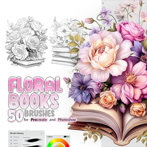 50 Floral Books Stamp Brushes for Procreate and Photoshop