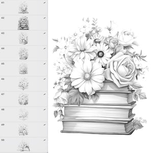 Don’t spend hours sketching books and flowers from scratch — with 50 Floral Book Stamps, you’ll always have enchanting designs ready to use.