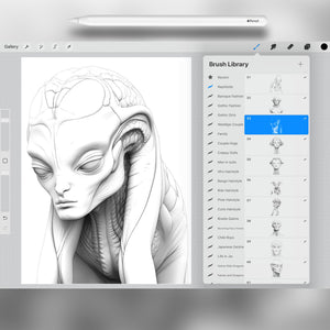 These Procreate reptiloid brushes are perfect for science fiction art, alien design, and dark fantasy projects. With detailed stamps of humanoid reptilian beings, you can instantly create eerie, otherworldly, or futuristic scenes. Ideal for digital painting, comics, or concept art.
